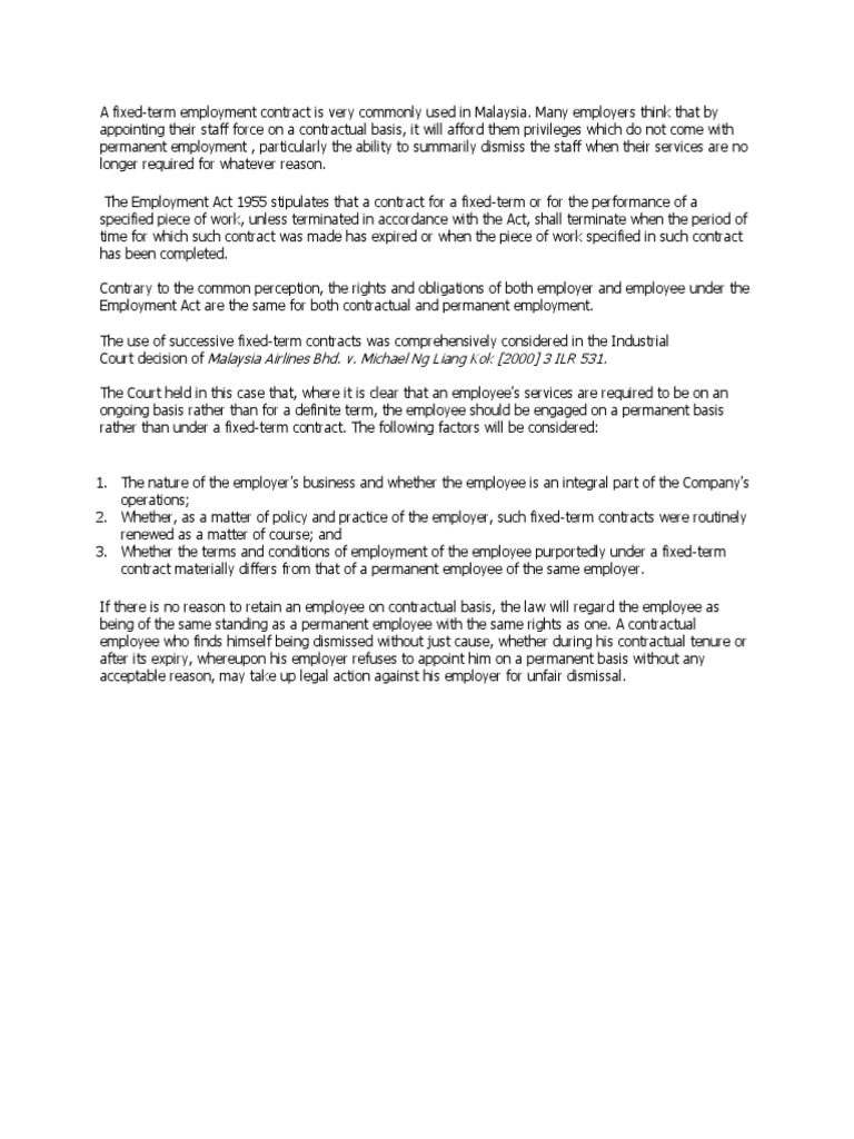 Pdf A Comparative Study On The Rights And Protection Provided For The Fixed Term Contract Employees Between Malaysia And The United Kingdom